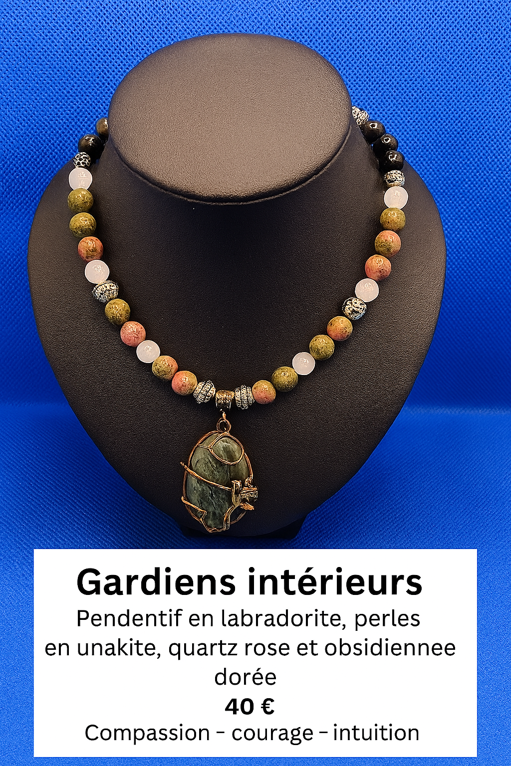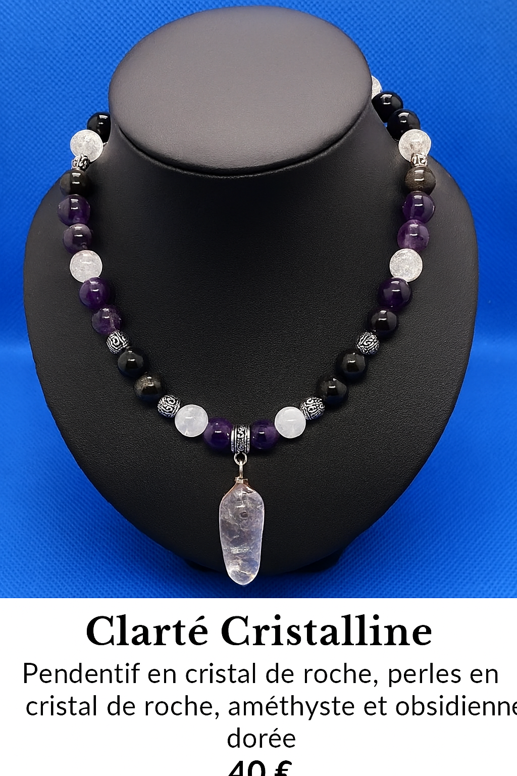 D’autres colliers sont disponibles, chacun portant une intention unique et une alliance de pierres choisies pour accompagner les élans du cœur, les rituels personnels ou les passages de transformation.